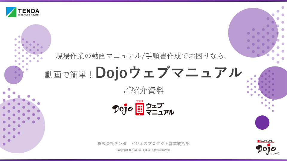 本資料ではDojoウェブマニュアルの機能詳細や導入効果に関してご紹介し、サービス概要に関してご理解いただける内容になっております。