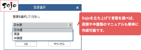 操作内容を自動で記録できるため、住民の利便性向上につながるだけでなく、説明資料作成の工 - 英語や中国語などの多言語マニュアルも手間なく出力できるため、外国人住民への対応も効率的に行えます。