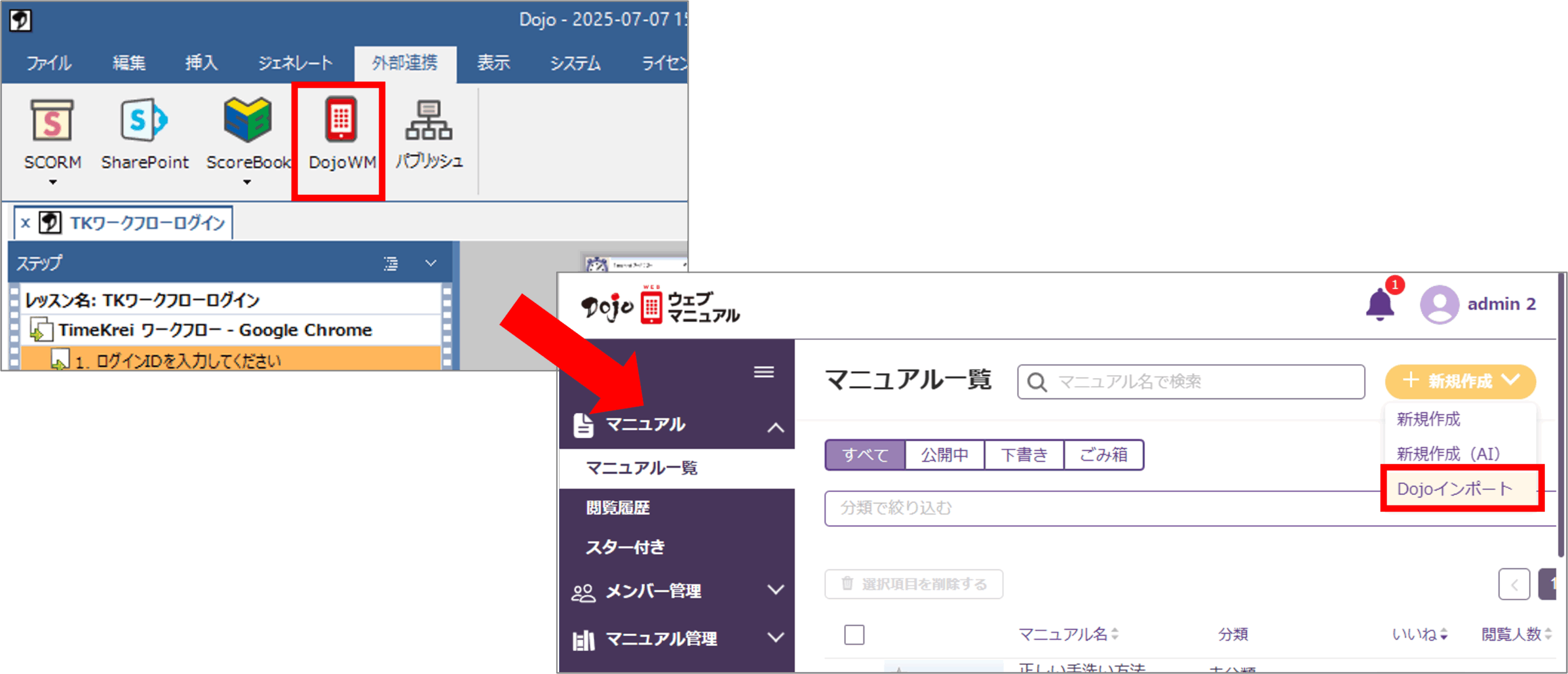 ※「Dojoウェブマニュアル」のインポート機能は、Ver.2.7.0(2025年7月15日リリース)よりご利用いただけます。