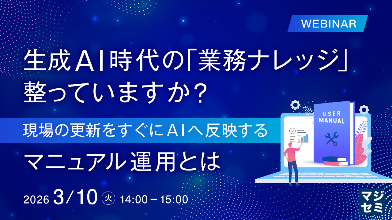 マニュアルトータルソリューションを提供し、企業の業務効率化を支援する株式会社テンダ(本社/東京都渋谷区、代表取締役会長兼社長CEO/薗部 晃、以下「テンダ」)は、2026年3月10日(火)に、生成AI時代における業務ナレッジ整備をテーマとしたウェビナー『生成AI時代の「業務ナレッジ」、整っていますか? ~現場の更新をすぐにAIへ反映するマニュアル運用とは~』を開催いたします。